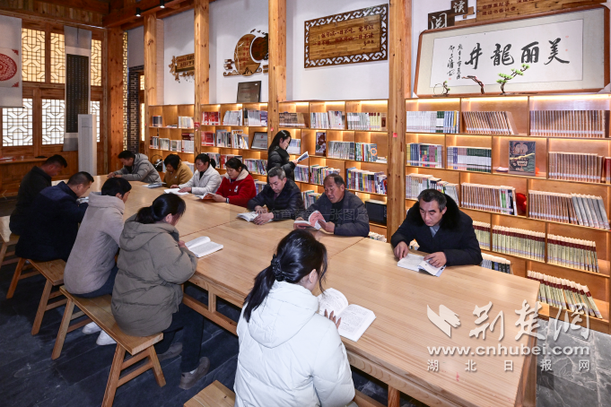 湖北省十堰市舟山县擂鼓镇岩屯子的村民读书看报。图片提供:通讯员