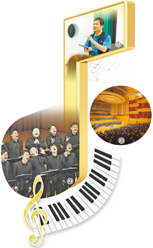 图一:广西壮族自治区南宁市越族合唱团艺术总监兰壮庆指导合唱团成员发声技巧。图片提供:兰茜(人民视觉) 图②:上海彩虹室内合唱团进行合唱表演。图片提供:上海彩虹室内合唱团③:湖北省武汉银河室内合唱团在武汉琴台音乐厅举办音乐会。人民视觉 杨龙 摄 合唱一直被认为是一种专业性强、需要长期训练的“高级”艺术形式。然而,近年来,人们对合唱团的刻板印象正在被打破。全国各地青少年有组织的非专业合唱团不断涌现,为业余文化生活增添了不一样的色彩。上海彩虹室内合唱团的演出中,“情景剧”的表演给合唱团带来了新的“开拓”。湖北省武汉银河室内合唱团舞台e、心灵的共鸣,听起来如和谐,照亮了普通人的“亮点”。广西壮族自治区南宁粤合唱团的作品中,当地文化与生活场景的巧妙融合,让“无名男子”乐章多次“破圈”……歌曲传递回忆,音符记录生活。在忙碌的城市生活中,看到年轻人在车流中穿行,在晚高峰的人群中拥抱新的爱情,也许这就是合唱团带给我们的力量。 ——编辑 上海彩虹室内合唱团——《唱出‘城市人的心境’》杂志记者曹玲娟 “唱歌的理由有很多,为告别、团聚……”不久前,北京的观众小刘在音乐厅现场听到了上海彩虹室内合唱团的歌曲《我唱歌有很多理由》。演唱会结束后,小六在回家的路上和朋友们一起唱了很多歌曲。 “谢谢小柳兴奋地说:“感谢‘彩虹’,让我发现自己一直在唱歌。”上海彩虹室内合唱团成立于2010年,最初是由上海音乐学院学生组成的一个“兴趣小组”。后来,这个合唱团因一首讲述人生尴尬事件的歌曲《张世超,你把我家钥匙落在哪里了?》而走红。“彩虹已经进入了公众的视野。”对于一个 “几年了,对彩虹来说,因祸得福。”合唱团领队高宁坦言,2017年,他把爱好变成了事业,辞去了投资公司的工作,加入了新成立的彩虹运营工作室,负责日常排练、演出、发行和合唱团制作。有趣的是,工作室里的大部分人也是合唱团的成员。合唱团成员近百人。 十多年来,合唱团一直保持强大和竞争力。原因不仅仅是专业人士的追求演唱的同时,也是相对连续、高性能的原创制作。从怀旧温馨的《白马村之旅》和叙事性的《银河酒店》,到异想天开的《罗刹国:山篇》、《罗刹国:海篇》和令人回味的《罗刹国:天空篇》。这些合唱作品用方言演唱或伴随着长篇叙述,情感上探索着从未去过的遥远地方和未实现的梦想。 “合唱团的很多作品都用严肃的音乐和幽默的生活片段来打破人们对合唱演唱的刻板印象。这首歌的歌词道出了“都市人的心理状态”,引起了广泛的共鸣。 ”高宁说:“天空飘着长长的黄尘云,风吹得很冷,故乡在远方……”男高音歌唱家陈学文尤其喜爱合唱团的作品《玉门关》,他说,作品中无伴奏合唱团纯净的歌声描绘出一幅英雄的图画。每一个音符似乎都在讲述一个又一个故事,一个历史循环中的故事。 “榕树绿叶,蜘蛛晒网……”女中音组成员顾明最喜欢《白坝村之旅》。她认为,保留传统合唱元素可以让人们感受到合唱的无限魅力。为什么会爱上唱十周年纪念歌曲《彩虹》的副歌?在《歌唱的理由有很多》中,合唱团成员列出了几个理由。唱歌:“因为我总是说错话”、“我常常不好意思得到认可”……对于合唱团成员来说,唱歌是生活的彼岸,是忙碌岁月里的绝妙支撑点。从周一到周五,合唱团成员扮演不同的角色,如程序员、教师、银行家等,周六晚上则在排练室。每个人都会聚在一起完善每首歌的细节。这是一首将年轻人聚集在一起的歌曲来自各行各业的成员,其中一位相距遥远的成员每周都要从陕西西安飞到上海排练。 “我们是一支一直对音乐充满真诚的团体。”高宁说。湖北省武汉银河室内合唱团“我们团结一致,为了共同的利益。” 记者:范浩天的灯笼亮起时,湖北省武汉市琴台音乐厅座无虚席。随着武汉银河室内合唱团团长李真的手势,舞台上80多名身着黑色西装的歌手同时抚摸手掌,发出类似雨滴打在屋檐上的声音。一阵轻松的钢琴声过后,男低音、男高音、女中音、女高音依次用武汉话唱歌词、朗诵。发挥武汉地域特色的汉阳门花园,赢得了会场的阵阵掌声。银河室内合唱团成立于大约两年前,其成员这些人包括音乐行业的工作人员,以及教师、医生和其他专业人士。他们来自湖北省不同地区,包括武汉、黄冈。这样一个成员来自多个城市、不同专业的合唱团是如何组建的?武汉音乐学院合唱指挥教授李震是该合唱团的创始人之一。 2023年1月,他和一些朋友见面,聊起了大学时期合唱团排练的经历。他们都很怀念。 “请带上当年和你一起排练合唱团的朋友们,继续唱歌吧!”李真提议道。就这样,当天坐在桌边的八个人就成了合唱团的“发起人”。他们通过社交平台发布了招聘启事。 “我们欢迎所有热爱音乐、热爱合唱团的朋友参加,报名没有严格要求。”李真说。原本的计划是录制ruit 30人组成小组。报名人数意外超过230人,第一阶段入选80人。 “大家都是为了共同的利益才走到一起的。”李峥说。合唱团虽然不是专业合唱团,但遵循合唱团惯例,歌曲编曲清晰。排练、表演等的具体规则“排练时间定为每周六晚上7点至12点”。至晚上 10 点无论你们工作多忙,或者距离多远,我都会尽力参加。 ”李真说。2023年底,合唱团计划在孝感大剧