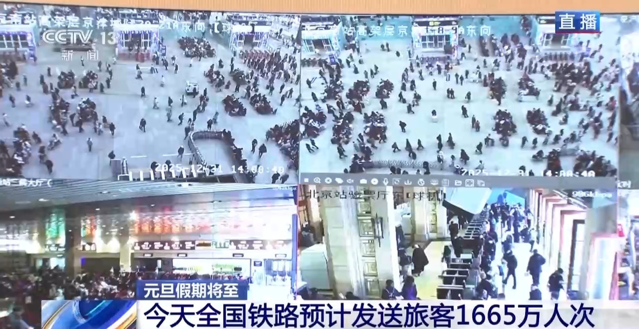 总台央视记者 郑连凯:国家铁路今天预计发送旅客1665万人次,已经超过元旦假期期间铁路日均旅客发送量。北京、上海、广州等地占据了大部分客流量。